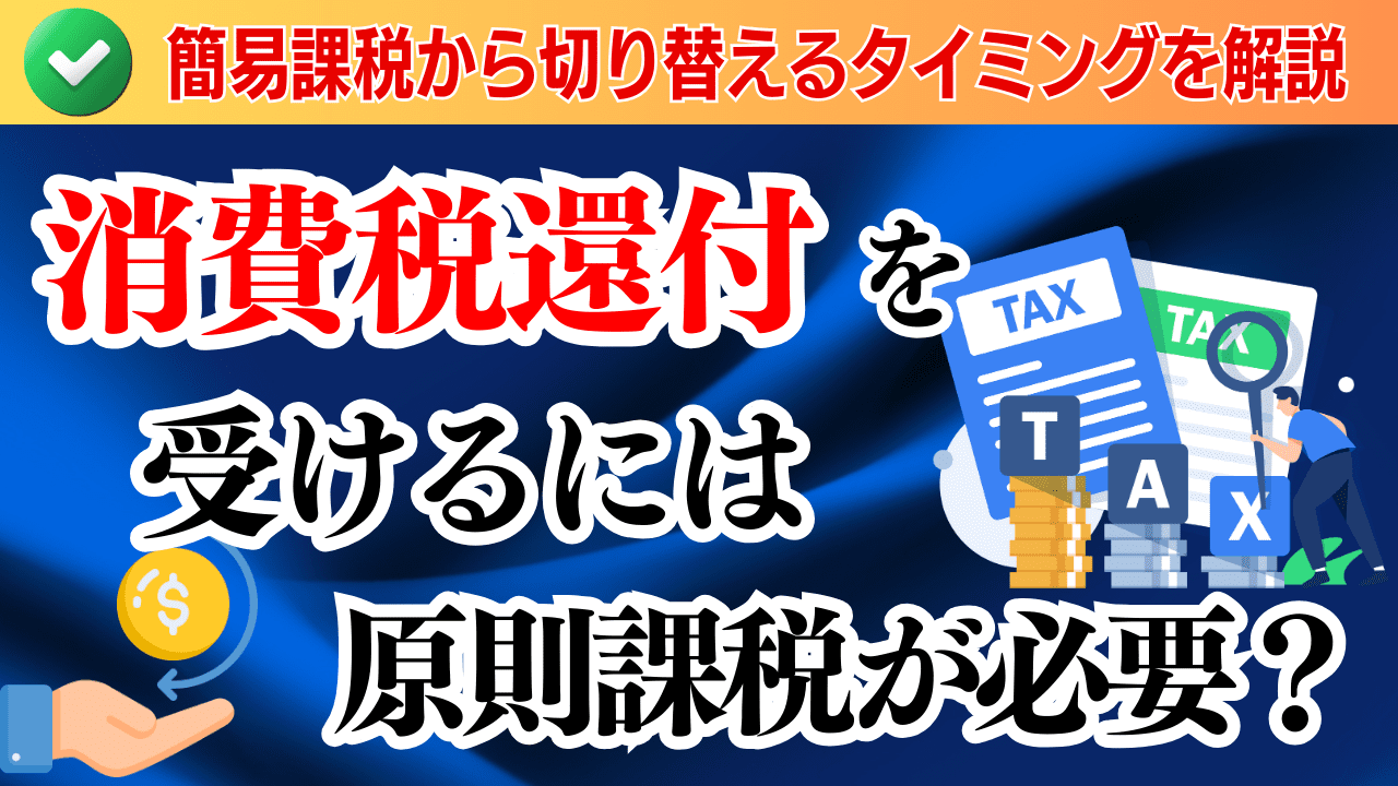 消費税の還付を受けるためには、原則課税である必要があるという点です。